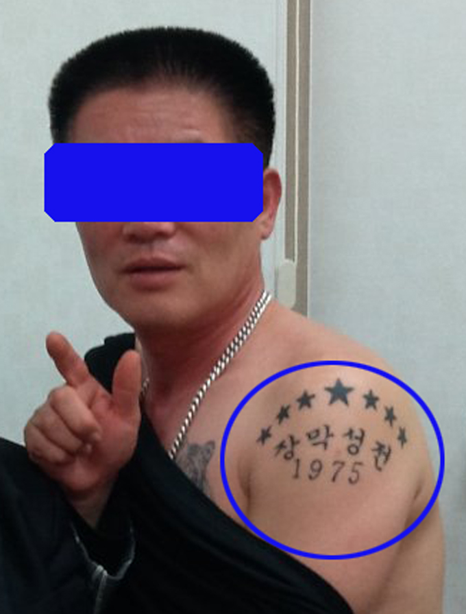 7. 약 40년 전의 문신이라며 7별을 몸에 구라치면서 낙서를 하는 김*태