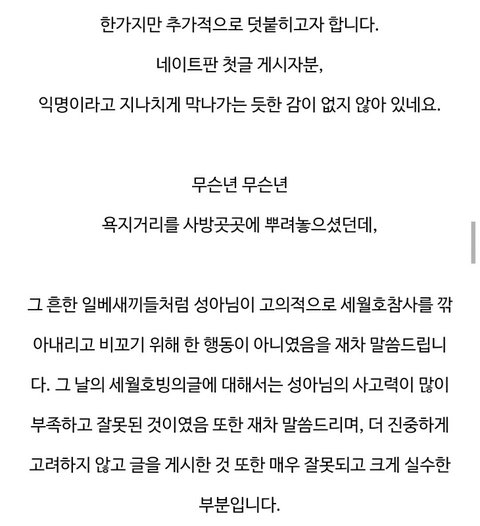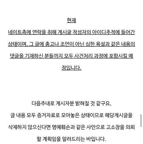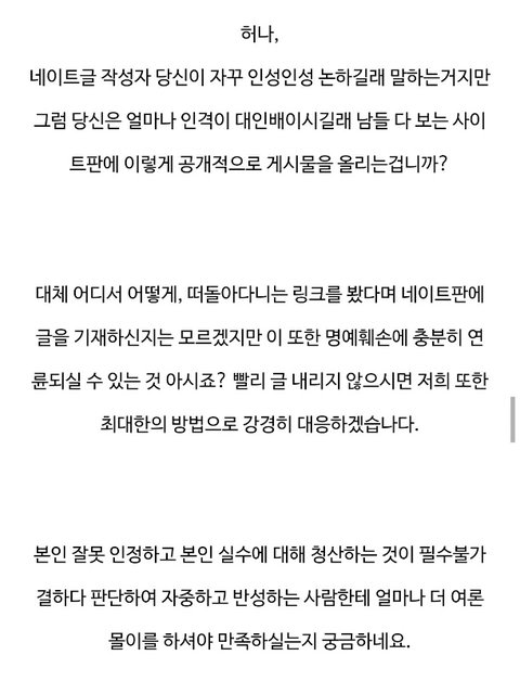 지금 그 빙의글 쓴 사람 지인이랑 뭉쳐서 고소한다고 난리임. 글 자체를 안 내리면 아이디 추적해버리겠대...혹시 해서 인신공격 한 건 지우고 비난 한 거는 수정하자 ㅠㅠ 확실히 세월호 3주기에 그딴 글을 올린 거에 대해서 지적했어여지 욕은 너무 심하게 했을 수도 있으니까