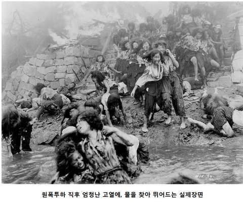 이 사진속에서 강물에 뛰어든 사람 그 누구도 살지 못했다. 근육이 녹아 움직이지도 못하는 상태에서 점차 물 아래로 잠겨 수장됨...