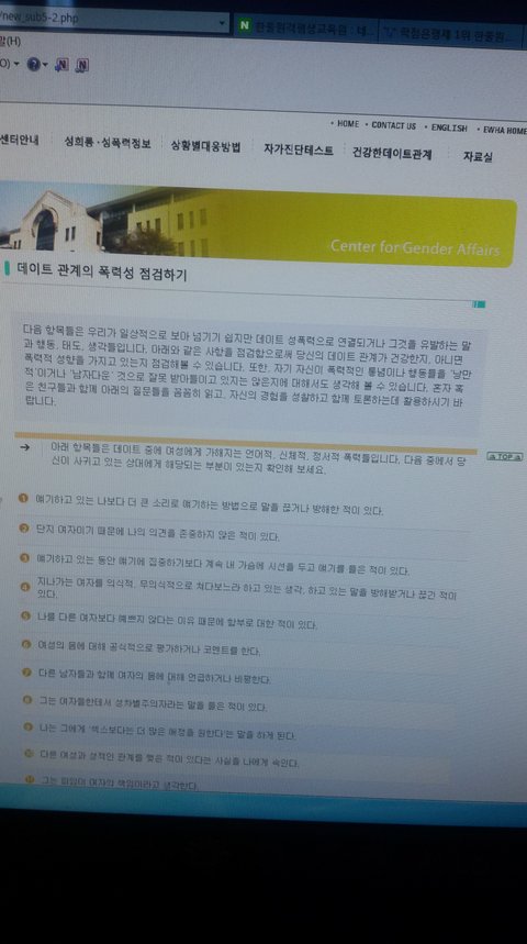 이화여대 양성평등센터, 데이트폭력 테스트