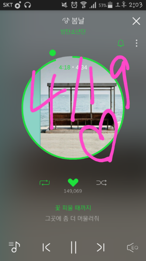 시험기간에다가 이번에 벚꽃 완전 빨리 진 느낌이고, 다른 데 벚꽃 사진 올라오면 다 커플 사진이고(ㅠㅠ) 해서 올해 벚꽃은 이대로 갔구나 싶었는데ㅠㅠㅠㅠ 남준이 사진 보니까 완전 힐링된다ㅠㅠ 남준이 막 돌아다니면서 '오 이쁘다. 찍어야지~' 하면서 미소지으면서 찍었을것같아서 완전 귀엽ㅎㅎ 애들이 풍경사진이나 하늘 사진, 구름 사진, 꽃사진 이런 거 올리면 진짜 힐링되고 '잘 쉬고 있구나'싶어서 좋아 :)