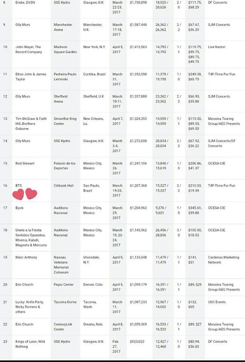 이틀 공연으로 13억... 빌보드 핫 투어에 올랐대