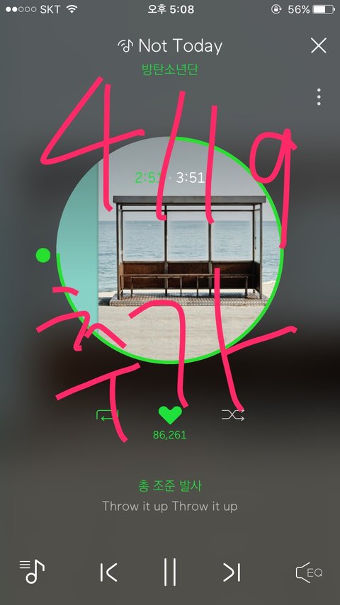 아까 지민 목격담 사진 올린 쓰닌데 또 짹에서 새로운 사진 찾았어!!!! 저 하트는 내가 그린 게 아니라 원래 있던 거..