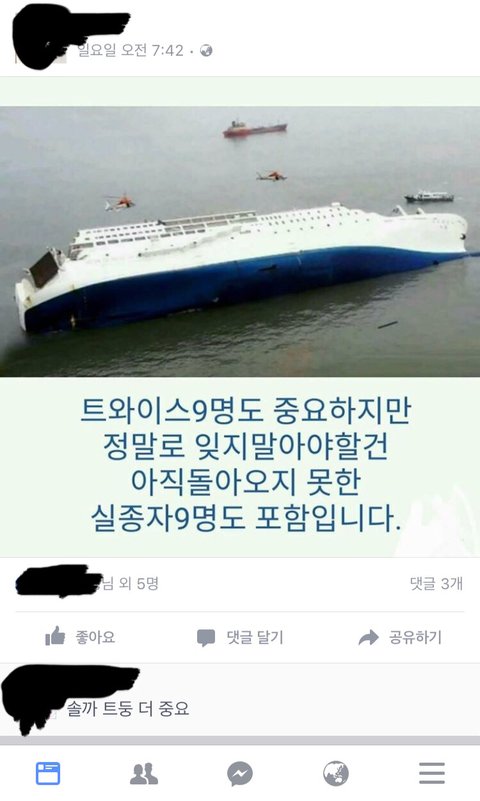 세월호를 트와이스에 비교하고있다..; 댓은 더 가관;