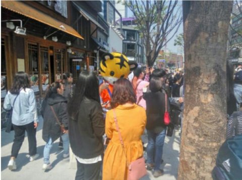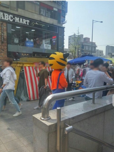 호랑이 탈을 쓴 채 홍대에서 직접 나눠주며