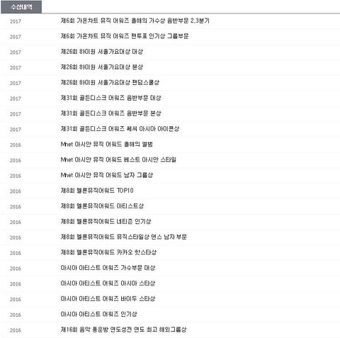 엑소 수상내역 헥헥 넘 많아