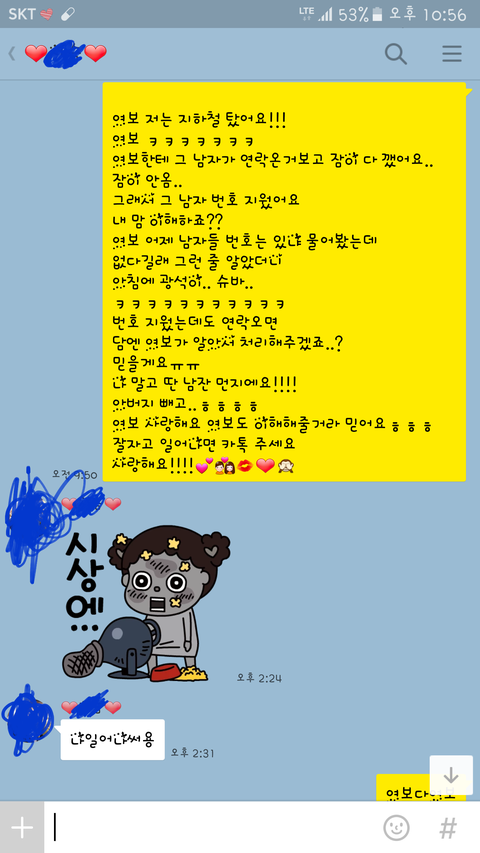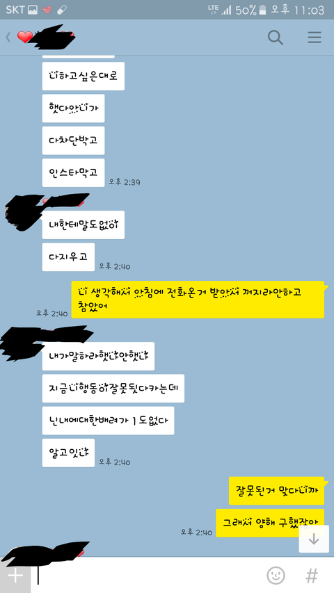 카톡 인스타 전화번호 이런거 없지? 하니까 카톡 손수 다 삭제하시고 인스타 전번 이런건 없다고 확실히 말하더라고