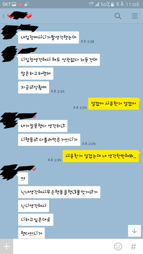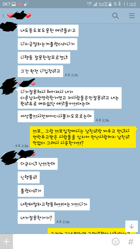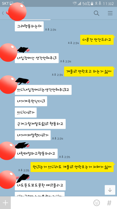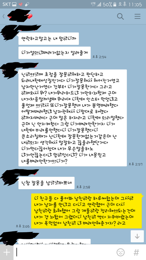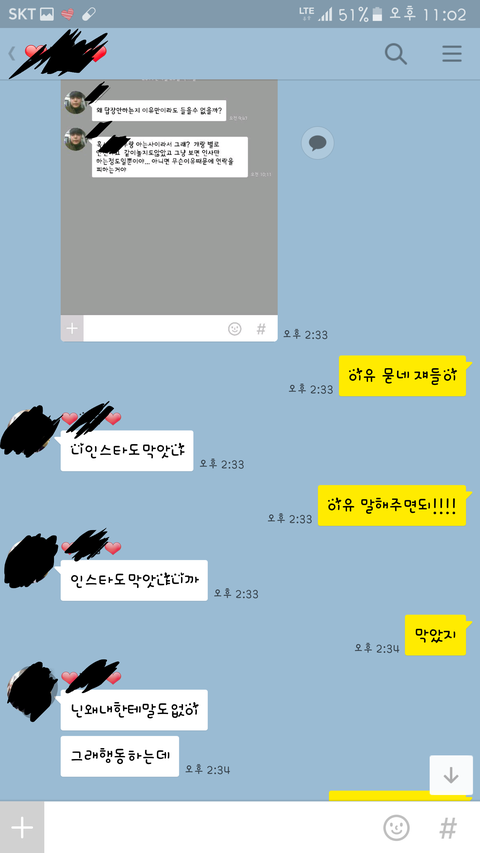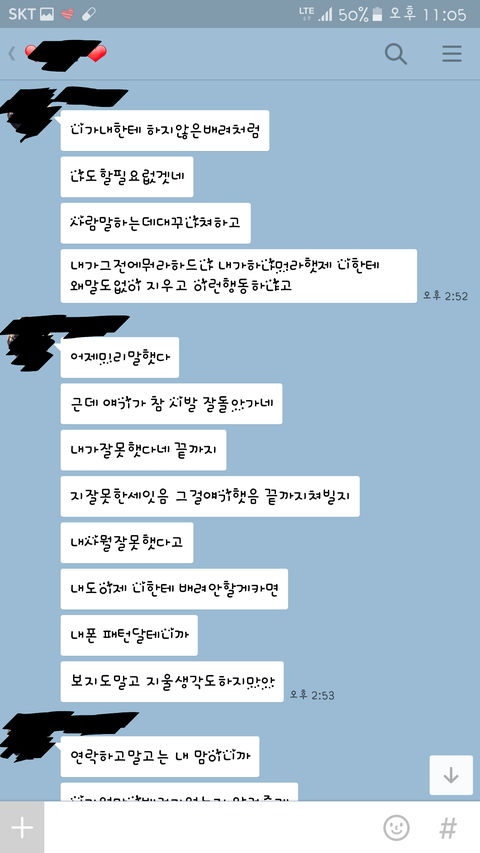 화해를 시도해? 그래놓고 카톡해놓은거 버젓이 놔두고 지우지도 않았어?ㅋㅋㅋㅋㅋㅋ