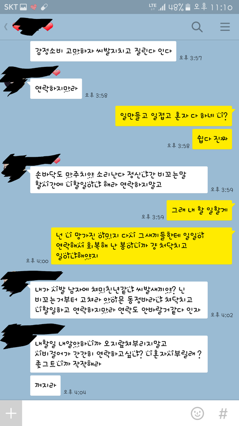 나도 지쳐서 씨벌꺼 도저히 받아주기 힘들어서 이렇게