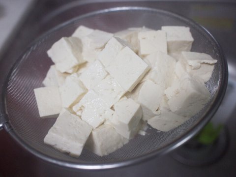 소금 넣은 끓는 물에 두부 한번 살짝 데쳐줍니다.