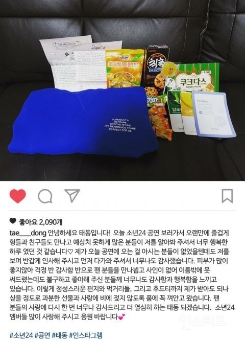 말도 이쁘게 잘쓰고 팬들이 준 선물이나 편지를 소중히 여기고