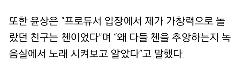 첸이라는 친구가 자기 노래 많이 부르는데 정말 잘부른다고 언급
