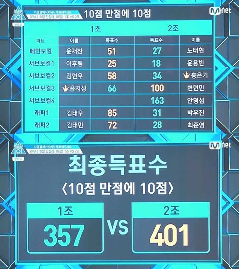 윤지성 팀 357 / 안형섭 팀 401 나와서