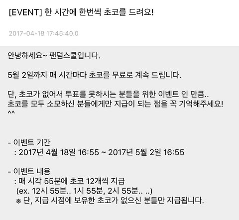 우리 팬덤학교 이틀째 막판에 뒤집혀서 2위임 매시각 55분에 초코 없을경우 초코 주니까 받아 초코 하나도 없을경우에만 주니까 ㅇ애매하게 남은초코는 게시글추천 눌러서 없애