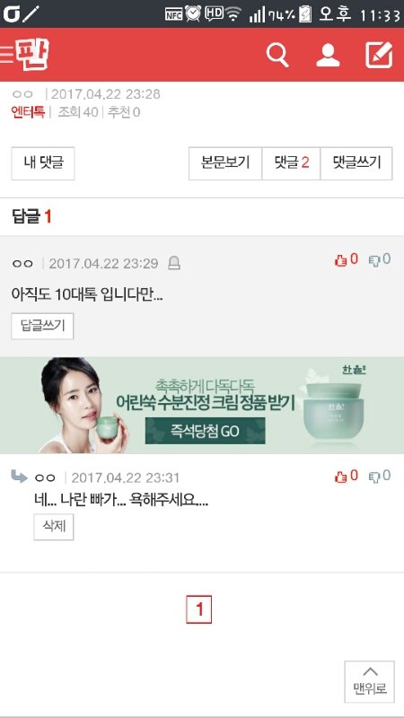 저기 댓쓰니... 나 보면서 되게 한심했겠지....