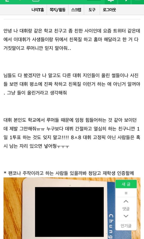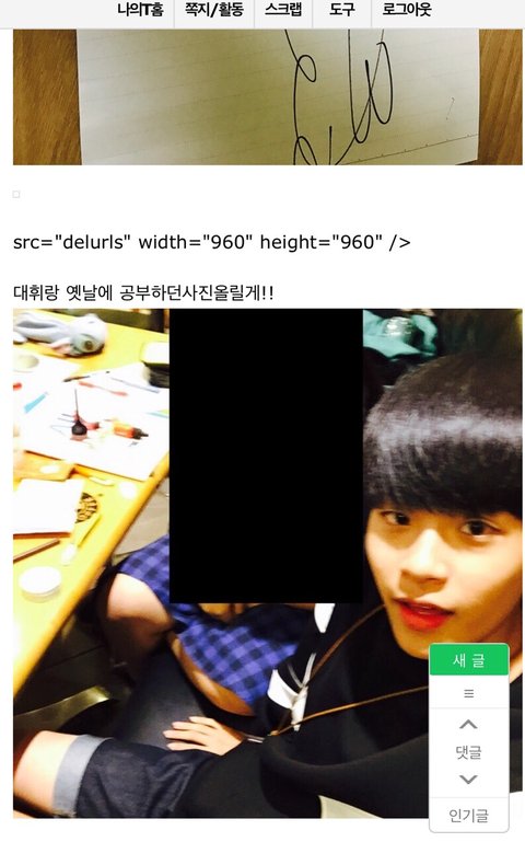 친목 한거 아니라고 인스티즈에 올라옴ㅜㅜ 실친인가바..계속 인증 사진 더 올려달라니까 대휘랑 찍은 사진이랑 싸인받은것두 올렸엉.. 댓글에도 대휘가 자기한테 아니라고 했다고 썼던데... 이제 대휘 욕 좀 그만 먹었으면.. 사진은 인스티즈에 올라온거 캡쳐한거야!