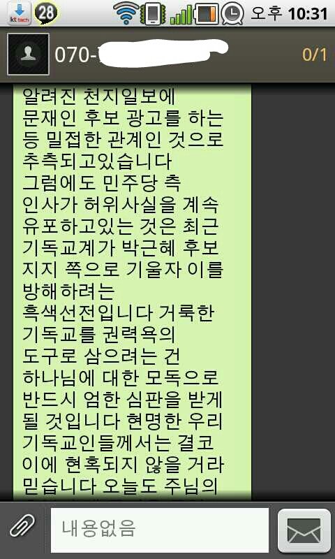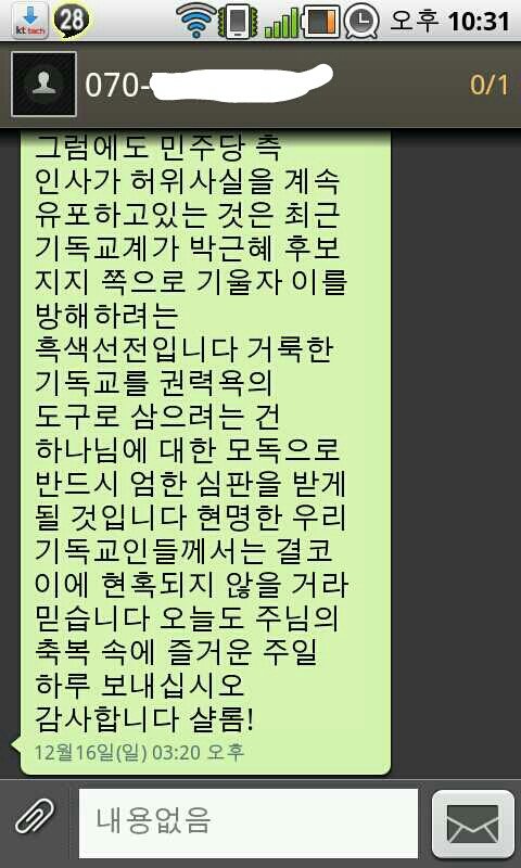 부디 이번 대선에서는 이런 문자 보내는 개념없는 인간들이 없길 바라며 올려봅니다^^