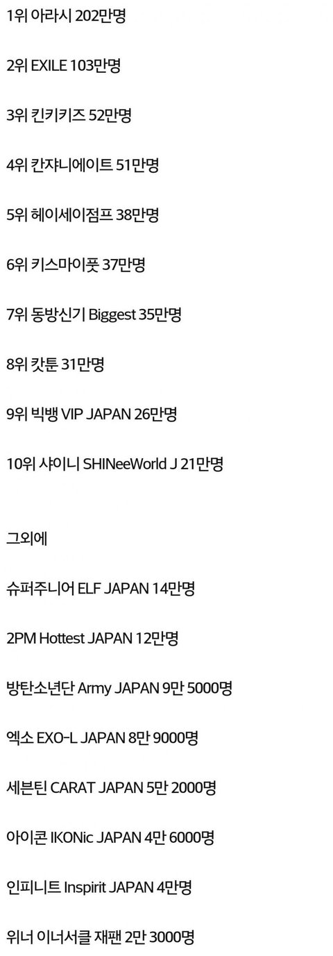 현재 일본 유료팬클럽 회원수 순위