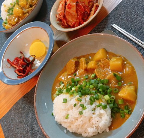 양파 30분동안 캬라멜라이징해서 감자랑 돼지고기만넣고 카레.