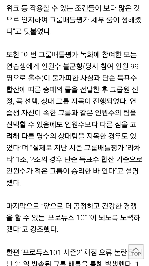 그냥 한마디로 말하자면 점수계산법 공개한 후에 상대팀 지목했으니까 공평하대ㄷㅋㅋㄱㅋㅋㄱㅋㅋ 저 계산법에 어떻게 납득하지? 애들이야 엠넷한테 점수계산법 뭐라고 태클 걸수도 없었을거같은데 불공평도 미리 공지하면 공평하다 이건가