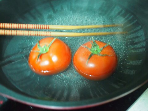 먼저 끓는물에 토마토 칼로 십자가 내서 살짝 데쳐 껍질 다 제거해줍니다.