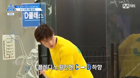 플레디스 황민현이 C반에서 D로 등급 하향 조정되서 D반으로 들어오고