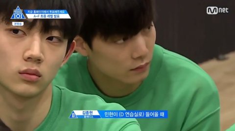 D반에 있던 같은 그룹 뉴이스트인 플레디스 김종현은 플레디스 황민현이 D반에 오자 정말로 안타까워하고 ㅠㅠ
