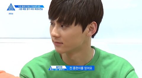 종현이 표정이 불안해 보여서 괜찮냐고 묻고 믿는다고 하는 황민현 ㅠㅠㅠ 다정 스윗
