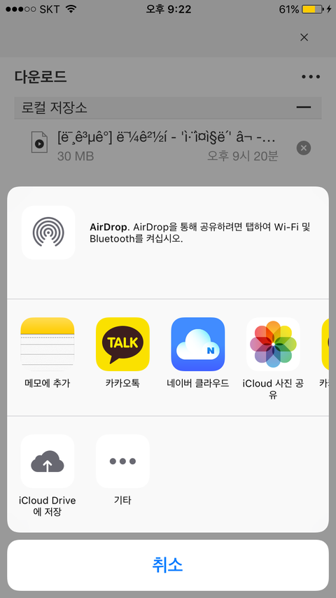 여기서 아까 다운로드 받은 파일이 뜰거임 클릭하고 icloud저장 클릭