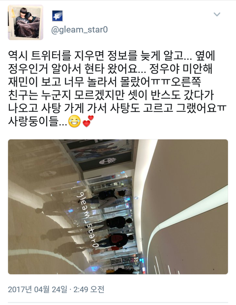 재민이 3월에 떴던 목격담 옆에 정우인걸로 확정됨