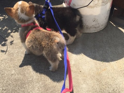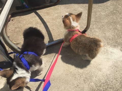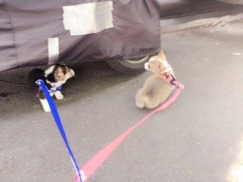 2차접종을 마치고 동물병원 샘이 산책나가도 상관없다고 해서 산책나왔어요~(얘는 모카)