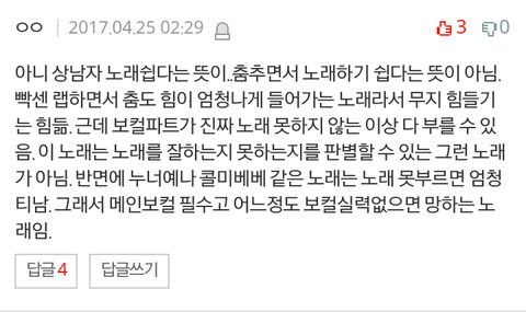 상남자도 그렇고 애초에 방탄노래가 랩이 어렵지 노래가 어렵진 않음 근데 1조 개못해...노래도 이대휘빼곤 불안불안