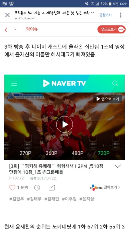 해시태그에 윤재찬만뺌