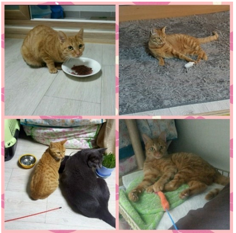 잘 먹고 잘 뛰어놀며 임보맘에게 늘 애교부리는 애교냥입니다.