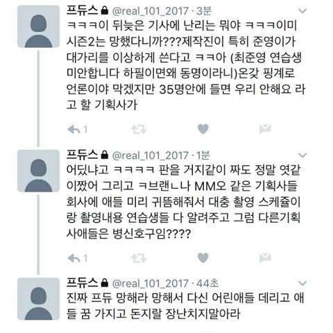 처음은 엠넷이 브랜뉴뮤직 박우진을 부각시키고 노태현을 보내버린 편집임.