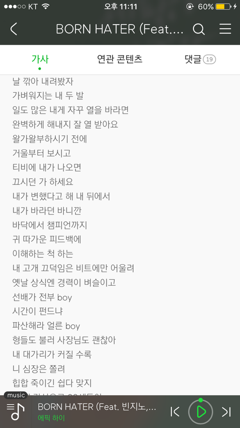 19세ㅠ미만 못들어서 가사 이렇게 가져옴. 이것도 역시 날까는 얘들은 하찮고 내가 대단해서 그런거라고 생각할수 있게됨. 갠적으로는 여기서 송민호 파트가 젤 좋음 ㅠㅠ