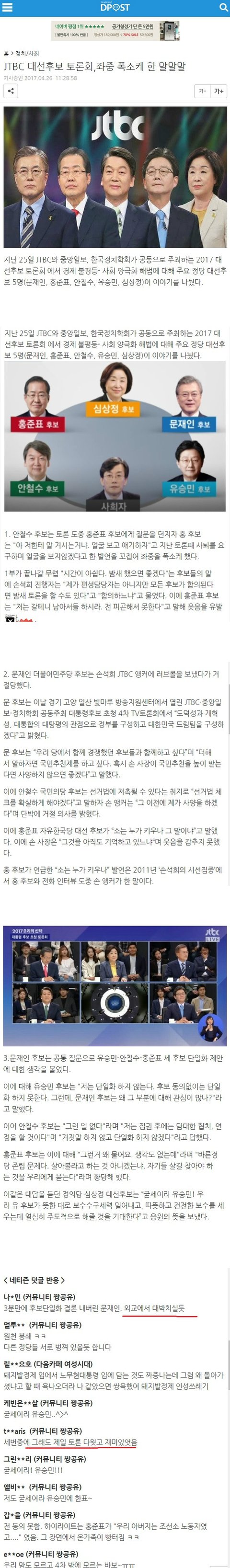 JTBC 대선후보 토론회, 좌중 폭소케 한 말말말