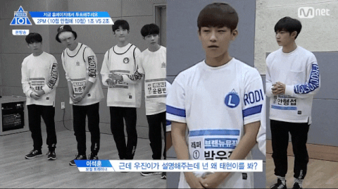 그리고 이 짤은 노태현의 프듀에서 나왔던 손짓이 그런 의미가 아니였다는 것을 의미하고자 가지고 왔어ㅠㅠ 그리고 이 석훈쌤이 너희는 포지션이 참 이상하다~~ 했을 때 박우진이 웃었는데 그 장면이 1초컷으로 잡히고 안형섭이랑 노태현만 클로즈업 하면서 이상한 분위기로 바뀌었어ㅠㅠ 이런 부분이 진짜 악편이 아닐까 생각해 실제로는 태현이가 팬들 사이에서는 별명이 소녀야!
