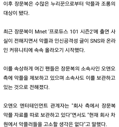 장문복이 이슈되고 나서 또 많이 욕을 먹고