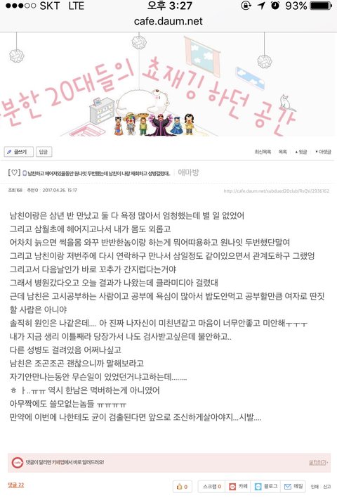 는 남자친구한테 성병 옮긴 여성시대 언냐^^