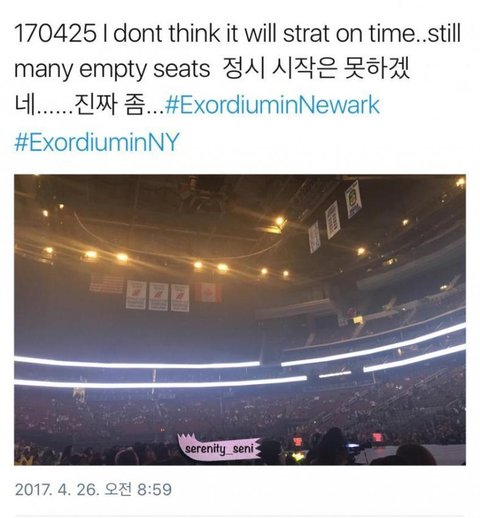 저거 딜레이 된거야 뉴욕에서 한게 아니고 newyark 뉴욕옆에 있는 도시 1시간정도 지체됨 그리고 매진 못시켰지만 3층에 약간 빈 곳 빼고 다 만석 스엠이 일정을 잘못 잡은것도 있지만 해외팬들 잡덕 여러그룹 같이 좋아하는 팬들도 많고 특히 장사장 연속 불참해서 레이팬덤 중국계팬덤 티켓팅 거의 안 하는 분위기고 완전체 콘서트가 아닌 관계로 북미팬들사이에서도 스엠에 불만 엄청 많아짐 그리고 멤버들 열애설 연속으로 터지고 여러가지 이유로 이 번 북미투어는 절반의 성공이지만 멕시코 엘에이는 완전 성공적일거다 기대해라 ㅋㅋㅋㅋㅋ한국중국에서 엄청 인기 많으니까 열폭 그만하고