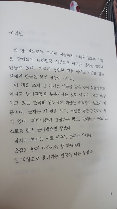 사실 이 책을 읽으면서 드는 생각은 (남녀갈등의 문제를 떠나) 한국인이 고쳐야할 문제들을