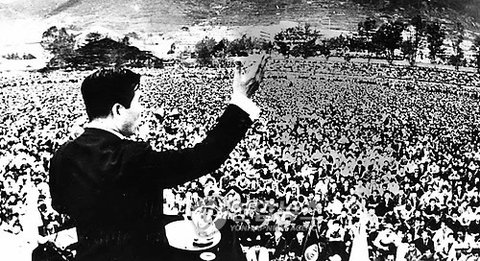 김대중이 어디서 연설한다 이러면 국민들 10명중에 1명은 짐을 싸서라도 그 장소로 사람들은 달려감