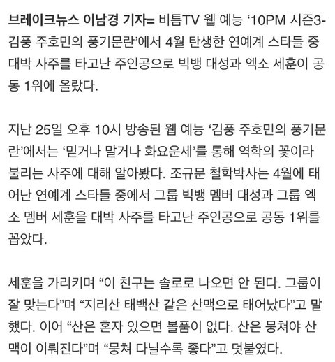 4월생 중 대박사주를 가지고 타고난 스타 1위