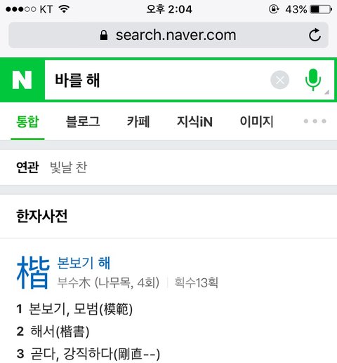 해찬이 한자가 본보기,바를 해 / 빛날 찬 인데,