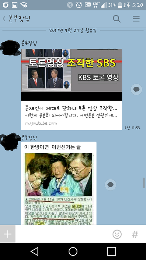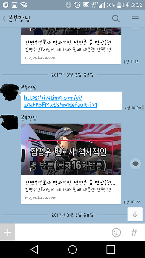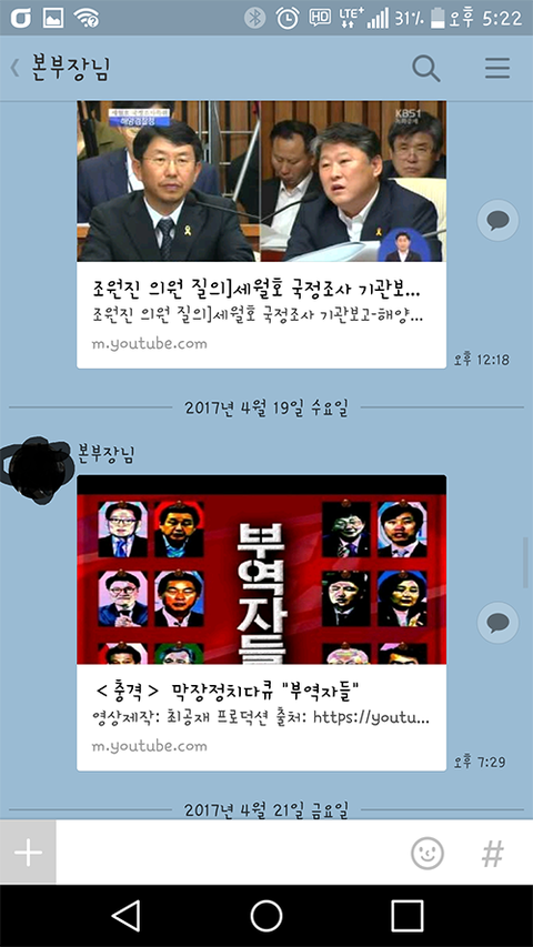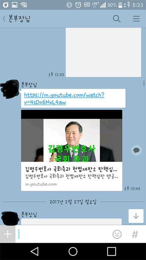 그런데 어느날 부터인가 유투브동영상을 카톡으로 공유하는걸 어디서 배워오셔서는 밤낮없이 저한테 그 동영상을 공유합니다.