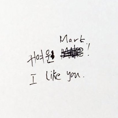(내 생각엔 아마도 '귀여워 Mark' 하려다가 '귀여운 Mark'로 바꾼 것 같음)