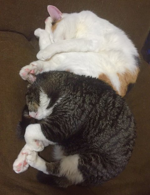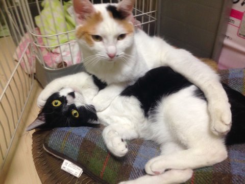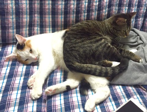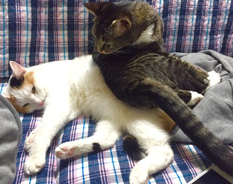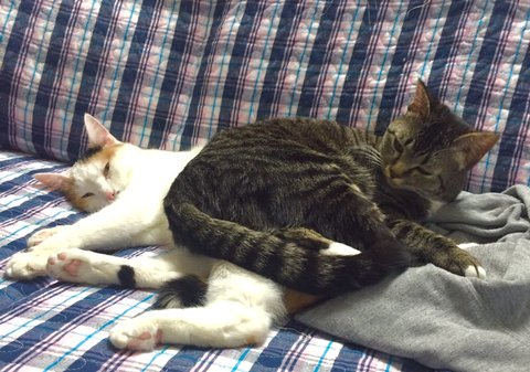 그리고 퐁타는 옆으로 기운 머리 때문에 그루밍을 잘 못하는 나나의 몸 구석구석을 자주 핥아줍니다.