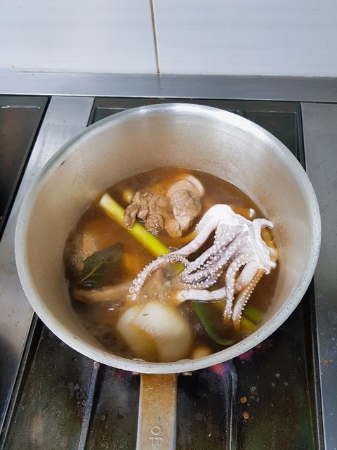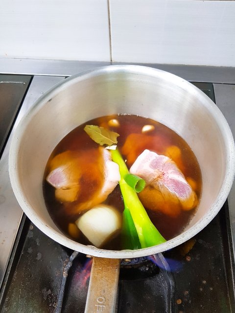 커피.마늘.파.양파.후추.월계수잎물에 먹다남은 목살퐁당