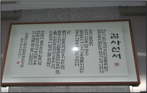 나는 이 순간 국가와 국민의 부름을 받고 영광스러운 대한민국 검사의 직에 나섭니다.
